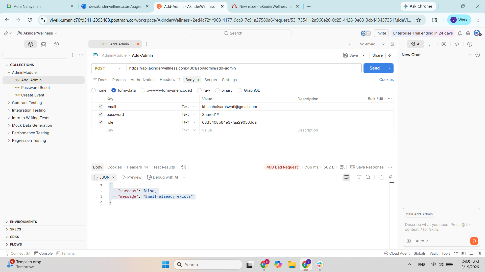 "message": "Email already exists"