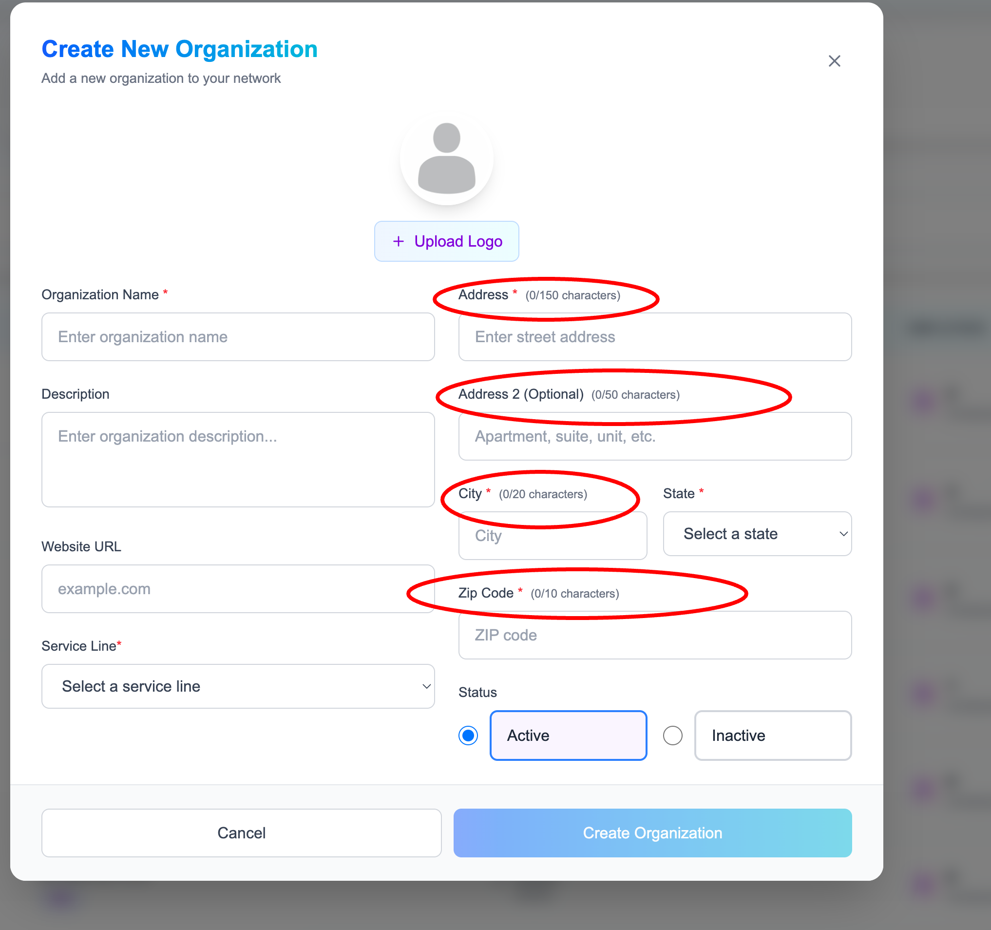 The /api/organizations/add endpoint accepts excessively large input values across multiple fields (e.g., address, city, name) without enforcing any size limits. This allows submission of very large payloads, which can impact performance and data integrity.