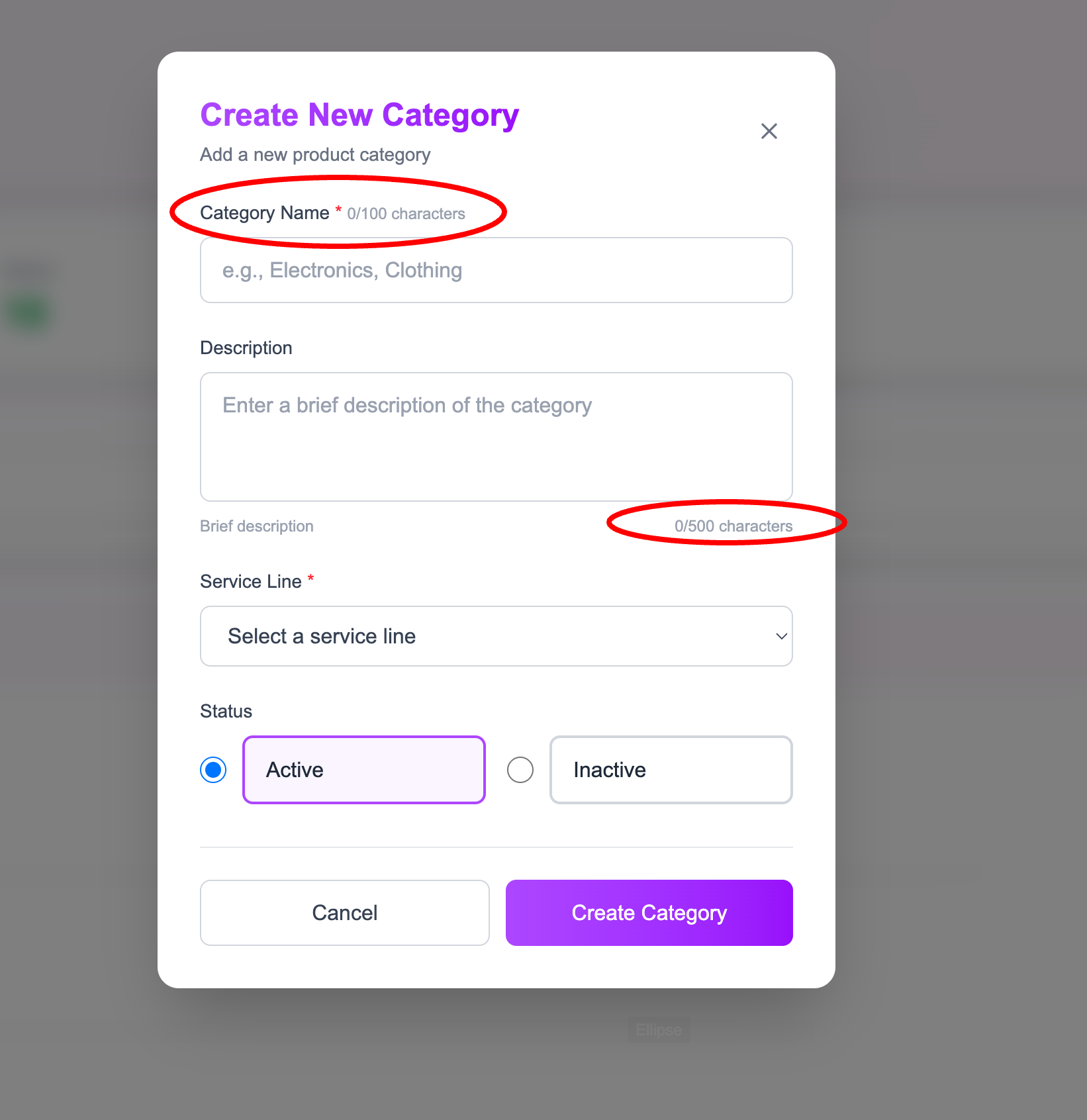 Category name and description fields do not enforce proper max length and cause UI overflow