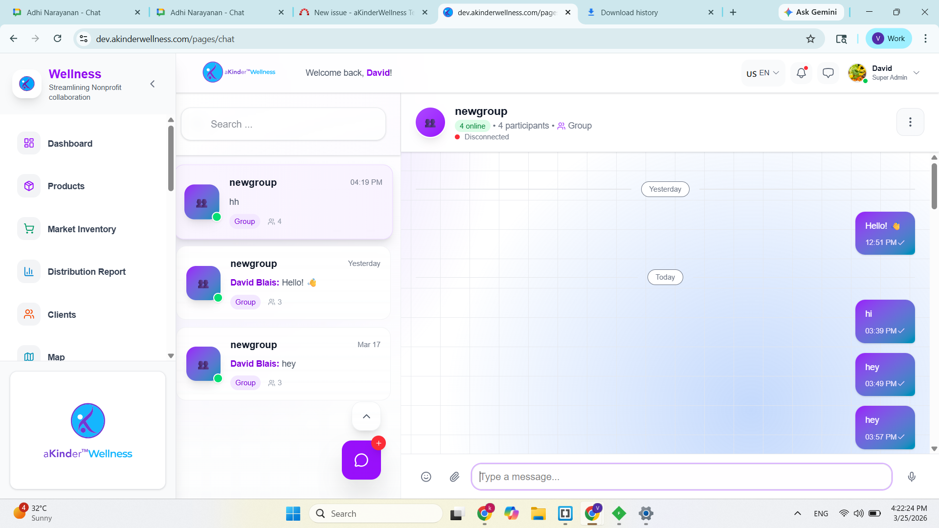 Messages sent in a chat are not reflected in real-time on the chat screen. Users need to refresh the page or reopen the chat to see new messages. Additionally, the chat status always shows “Disconnected”, indicating a possible issue with real-time connectivity.
