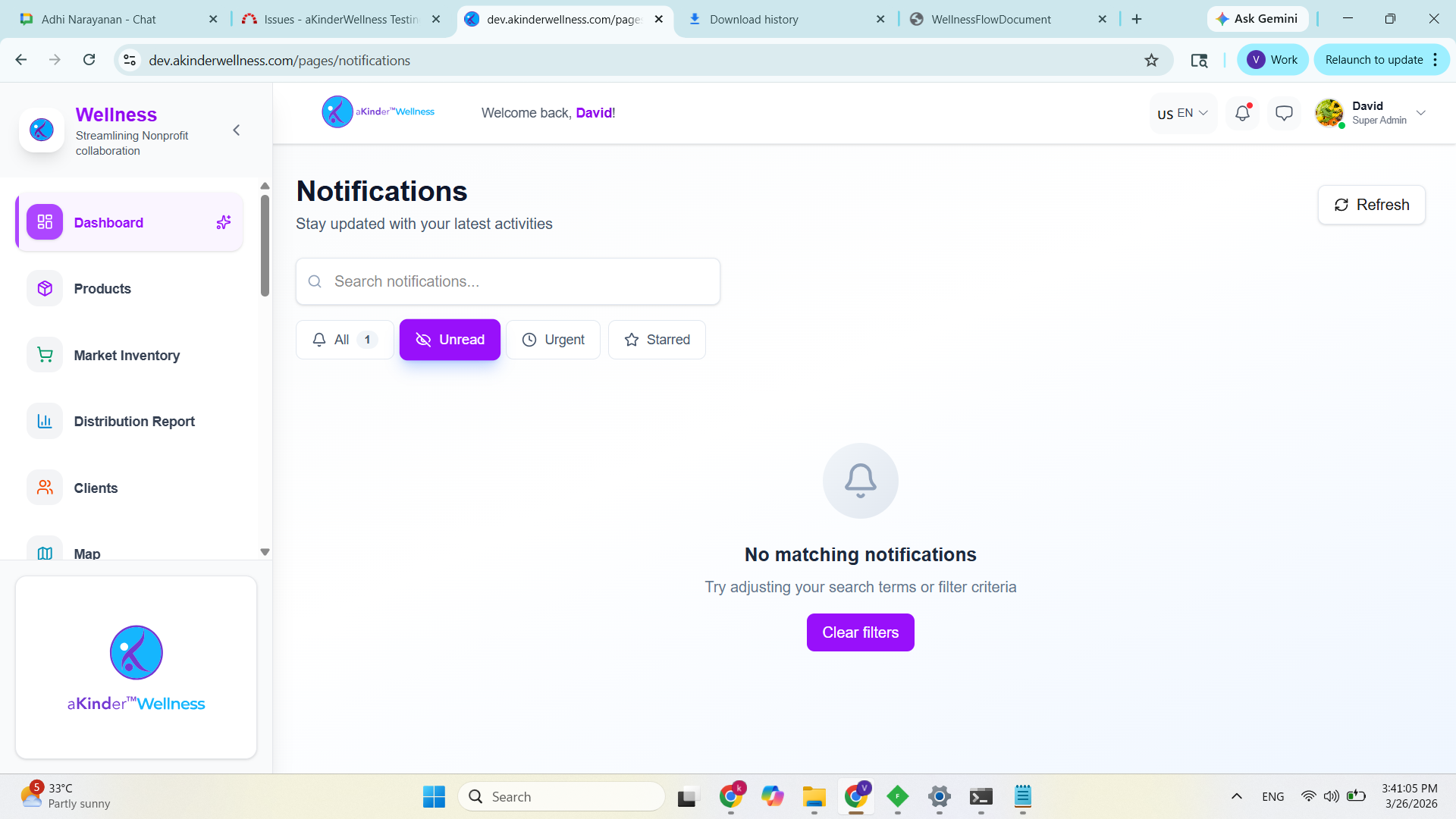 The notification bell icon still shows a red dot, indicating unread notifications even when none exist