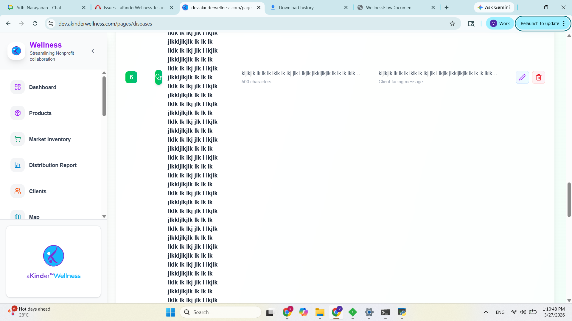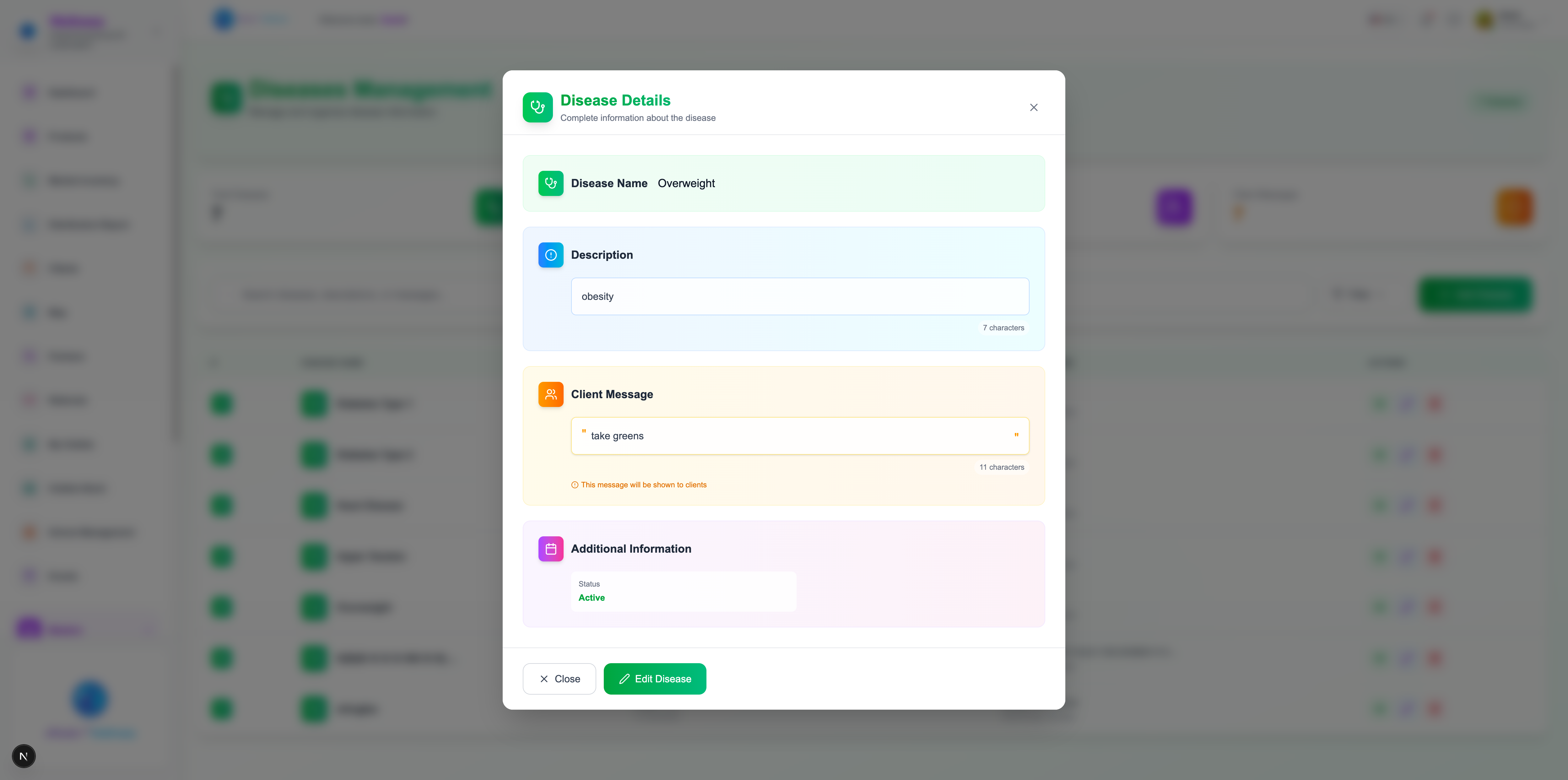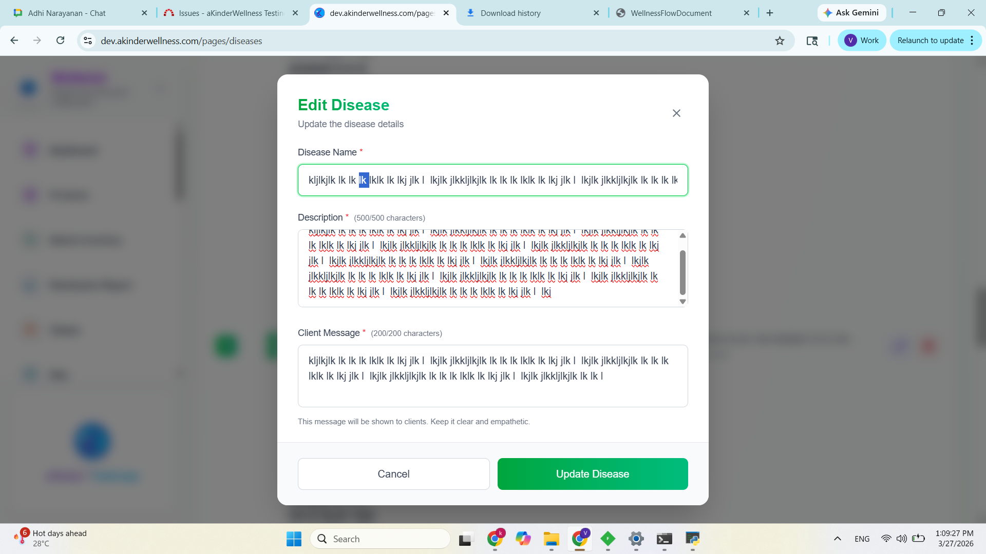 The Disease Name field allows users to enter excessively long text without any validation or character limit. This leads to UI distortion in the disease listing page, where the long text overflows and breaks the layout.