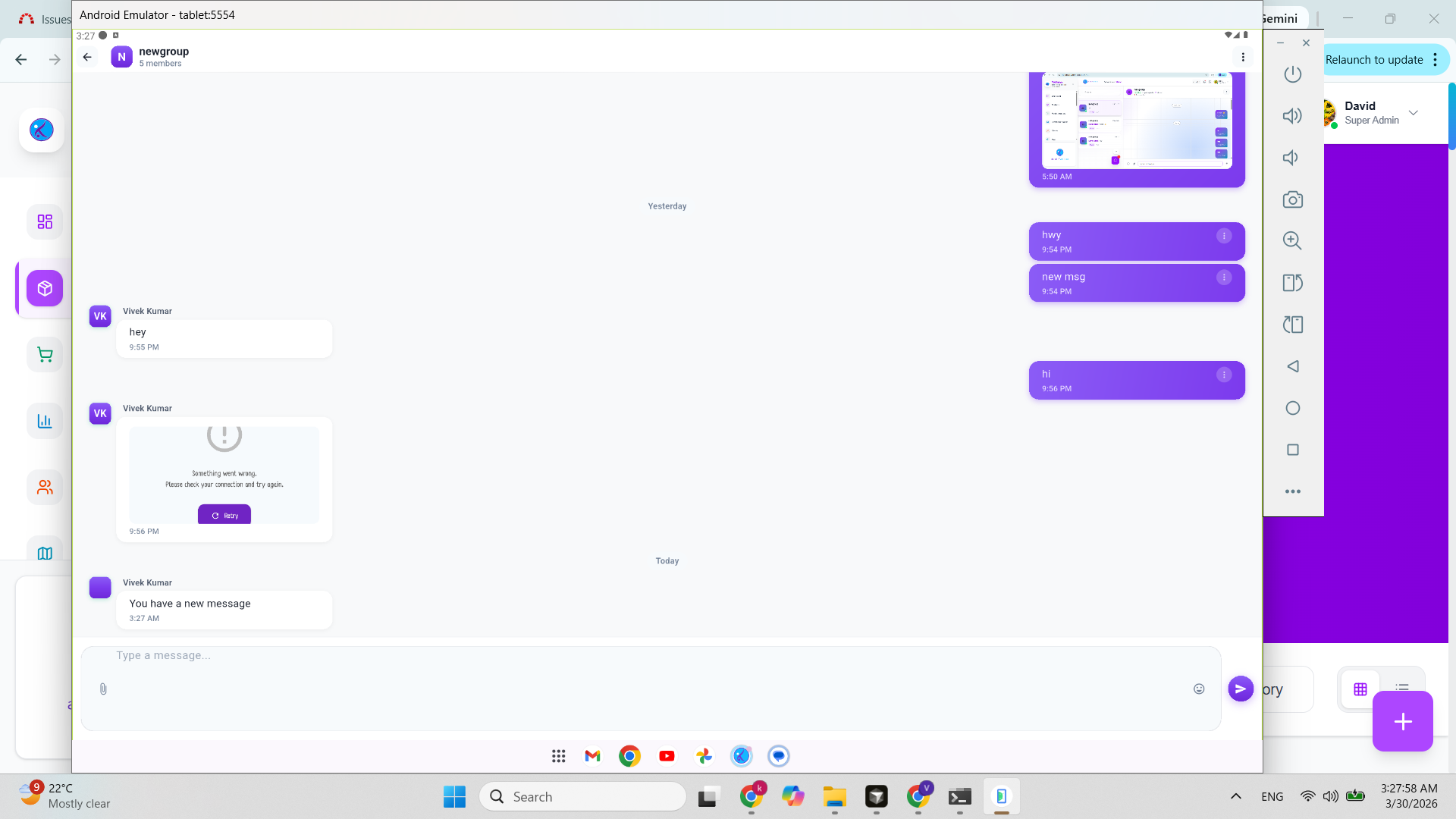 When a user is actively viewing a chat conversation and receives an attachment (e.g., image, video, or file), the message is not displayed in the chat UI in real time. Instead, a placeholder message appears stating “You have a new message.” The user must leave and re-enter the chat to view the actual content.